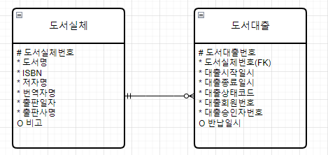 - 도서실체 테이블과 도서대출 테이블은 조인을 해야 한다.