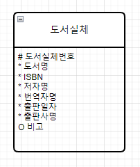(출판사 엔터티, 도서반납 엔터티, 회원 엔터티 등 정규화를 더 하면 좋겠지만 언급하고자 하는 부분은 그게 아니므로 생략한다.)